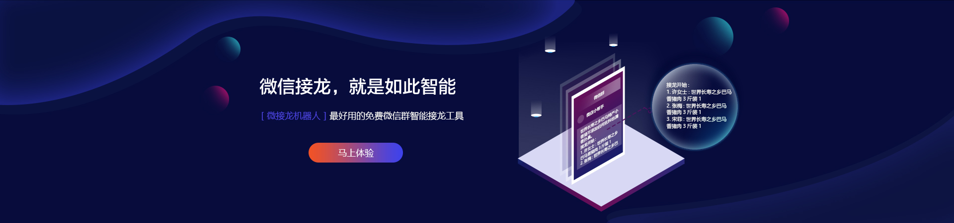 微接龙机器人,最好用的免费微信群智能接龙工具。